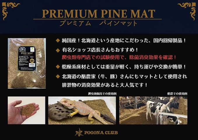 店内でも多数のケージにて使用中。レオパやフトアゴの床材として消臭作用も強く非常に優れています。