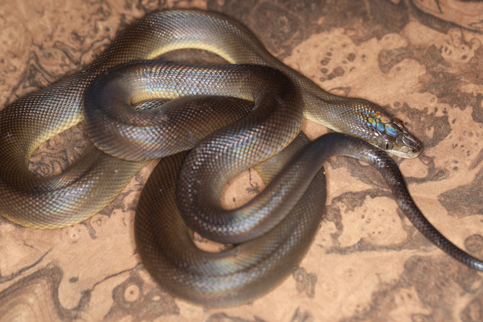 通常2メートル超え、巨大な個体は3メートルに達するとされる虹色に輝くニシキヘビです。